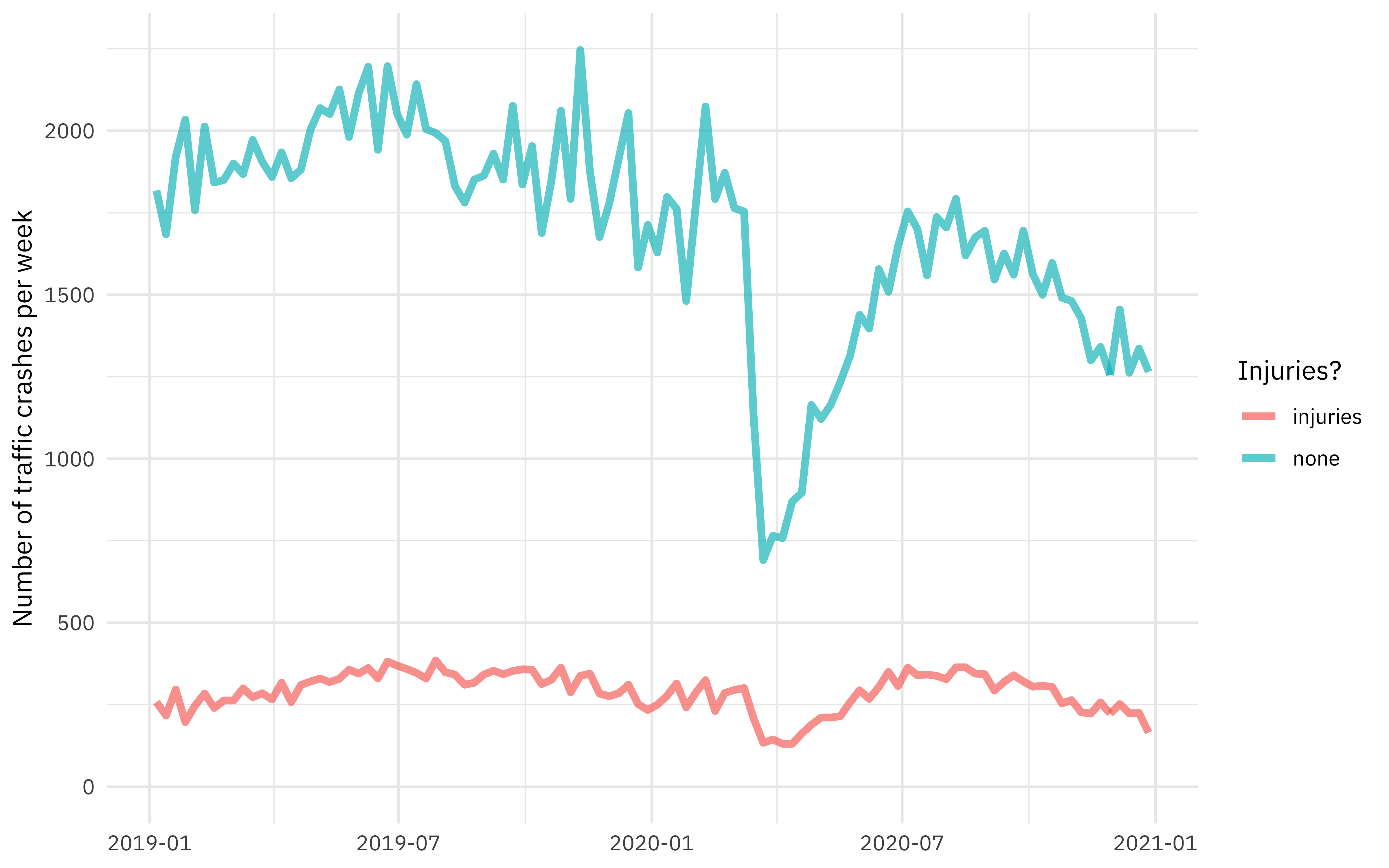 Download up-to-date city data from Chicago’s open data portal and predict whether a traffic crash involved an injury with a bagged tree model.